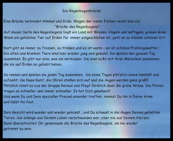 Ihr Platz in unseren Herzen bleibt. Ihre Geschichten bleiben. Ihr Licht bleibt — auch wenn sie nun auf der anderen Seite der Regenbogenbrücke weiterlaufen.